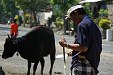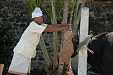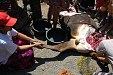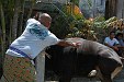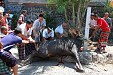Schon am Morgen wurde das Tier an einem Steinpfahl mitten im Dorf festgebunden
