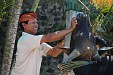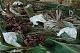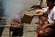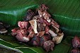 die Fleischstücke zusammen mit der Haut portionsweise zum Braten im Bananenblatt