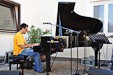 spielen konnte und im Hintergrund die Fußball- WM-schauenden Deutschen,