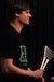 einer elektrischen Akustikbassgitarre und Florian Pfeifer aus
