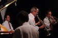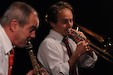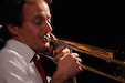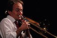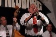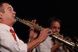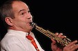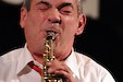 voller Begeisterung in sein Sopransaxophon schmetterte und