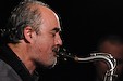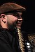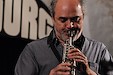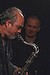 Band auf die Bühne des Birdland. Bandchef, Saxophonist, Bassklarinettist