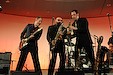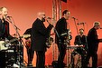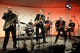 sieben Musiker auf der Bühne des Ingolstädter Audi Forum's und heizten